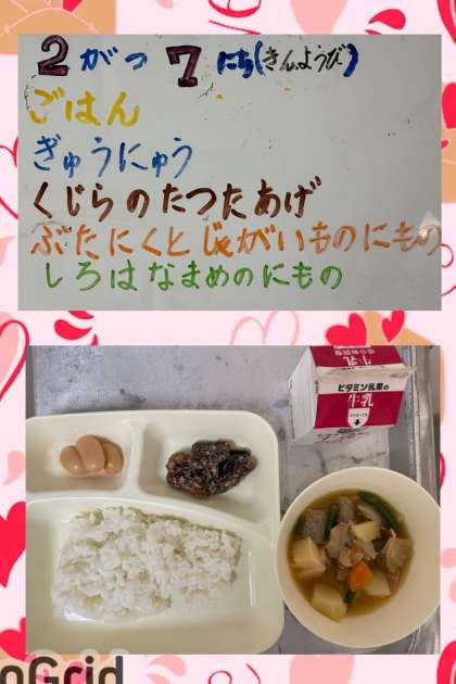 金曜日は、給食で年に一度の献立、『くじらのたつたあげ』が登場しました。