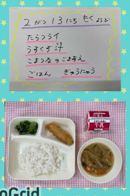木曜日の『うすくず汁』は、鶏肉、はくさい、だいこん、にんじん、生しいたけ、みつばを使用した汁ものです。でんぷんでとろみをつけることで、冷めにくく、体の温まる一品となっています。
