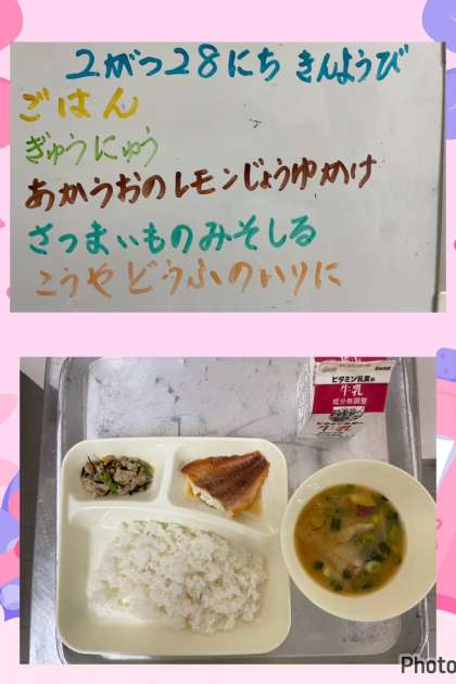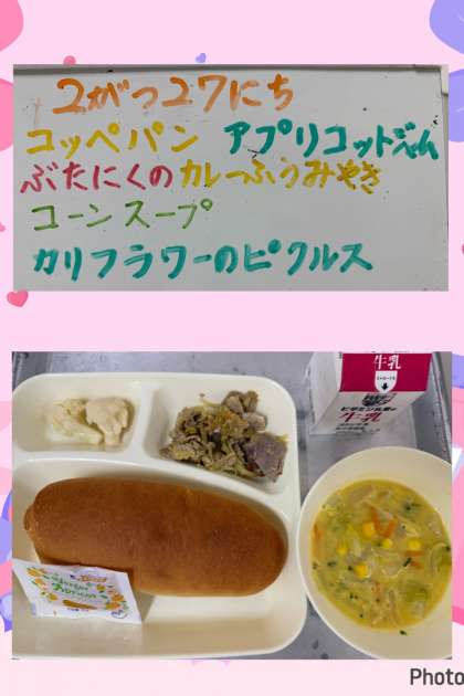 火曜日は子ども達に大好評の『カツ丼』が登場しました。【卵】の除去食献立となっています。