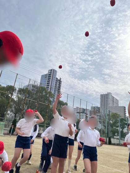 そして、最後は玉入れ。1年生の時の運動会以来の玉入れでした。その時にしたダンスも披露した後、たくさんの玉がかごに入りました。