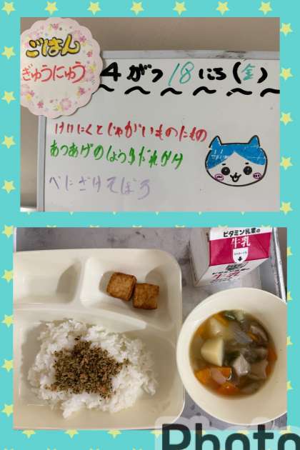 水曜日はごはんにとても良く合う『マーボーどうふ』が登場しました。牛ひき肉、ぶたひき肉、とうふ、たまねぎ、にんじん、にらが入った具だくさんの一品です。