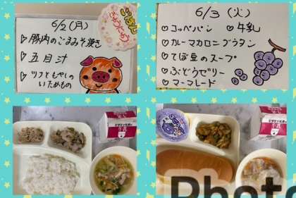 火曜日の『カレーマカロニグラタン』は、学校給食献立検討会議で開発された、乳、小麦を使用しないグラタンとなっています。