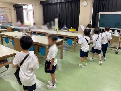 5月30日(金)に学校たんけんがありました。2年生に手を引いてもらい学校のいろいろなところを探検しました。理科室や家庭科室、事務室に職員室そして、校長室。これで1年生も学校名人です。