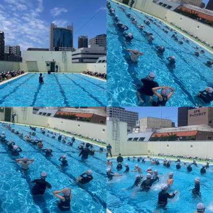 顔つけ、水かけ、水中ウォークと、バディと顔色や体調をチェックしながら、楽しく学習することができました。