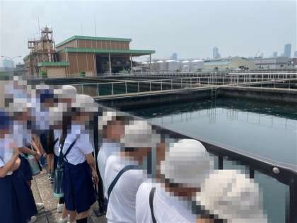 まずは、浄水場の中を実際に歩いて施設を見学しました。淀川から取り込んだ水が綺麗になっていく様子を、係の方の話を聞きながら見学することができました。子どもたちは「こんなに綺麗になるなんて本当にすごい!」「この大変な作業のおかげで私たちが水道水を使えるんだな。」など口にしながら、楽しく学習することができました。
