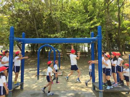 春の遠足で「服部緑地」に行きました。班で協力して、オリエンテーリングをしたあとは、たくさんの遊具で思いっきり遊びました。お天気にも恵まれ、お弁当もおいしく食べました。今日一日で、友だちとさらに仲良くなれました!!