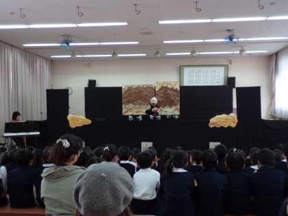 ふれあいコンサートがありました。1年生と西船場幼稚園の子どもたちが、音楽や歌に合わせて、お話遊びを楽しみました。
