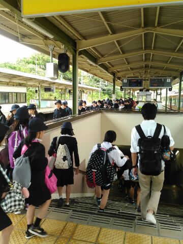 五十鈴川駅に到着しました。みんな車内でも楽しく過ごし、元気です。