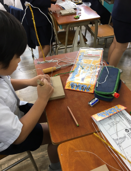 子どもたちはペンチ・ラジオペンチを上手に使い、工作に取り組んでいました。