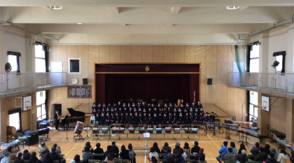 音楽では、オリックス劇場で披露する予定だった合唱や合奏など計6曲を音楽発表会という形で行いました。もてる力を十分に発揮し、素晴らしい発表になったと思います。