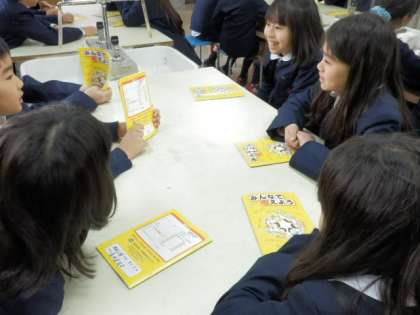 4年生は、防災のテキストをもとに、避難時の持ち物クイズをし、ふだんからの準備の大切さを学習しました。また、2学期に近畿地方で約4000回も地震が起こっていたことを知り、驚きの声をあげていました。