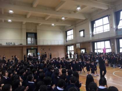 始業式の後に、2〜6年生と対面式を行いました。西船場小学校初の4クラス!少し緊張していた1年生でしたが、在校生の花道を笑顔いっぱい歩いていました。