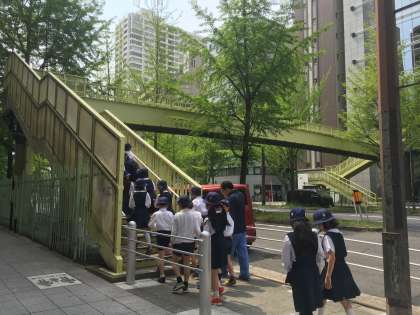 5月1日(月)、社会科の学習で校区探検に出かけ、学校の屋上からは見えにくかった所を実際に確認することができました。『駅への出入り口はひとつだけじゃないんだね』『思っていたよりコンビニがたくさんある!』等々、新しい発見がたくさんできました。