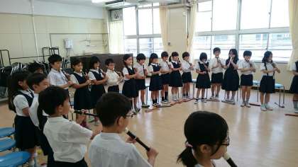 5月8日(月)、音楽科でリコーダーの学習が始まりました。みんな、『待ってました!』とばかりに楽しんで活動していました。はじめは、軽快な音が楽しくて強くふいたり、吹き方が分からず音がなかなか出なかったりしていましたが、指導にきていただいた先生から「きれいに吹くコツ」を教えてもらい、最後にはきれいな音色を奏でていました。