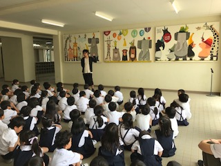 絵に込められた思いを聞くと、子どもたちから自然と笑顔がこぼれました。また、子どもたちからのたくさんの質問にも答えてくださり、楽しいひと時となりました。