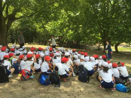 5/26(金)、服部緑地へ遠足に行きました。前日には雨が降り、当日の天気が心配されましたが、雲1つない絶好の遠足日和となりました。「緑地公園駅」まで、電車に乗る時間が少し長かったのですが、みんなよくマナーを守って行動できていました。公園に着くと、自然いっぱいの環境に、みんな大興奮!そのままの勢いで、ドッジボールや大縄跳び、鬼ごっこなどで体をいっぱい動かして遊びました。また、昆虫や植物などを見つけて自然の観察を行うなど、一日中元気に活動しました。