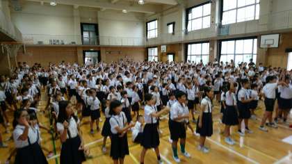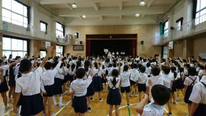 6月8日(木)、今日はなかよし集会がありました。5・6年生の集会委員が全児童でできる遊びを考えてくれて、遊びました。1年生はとても楽しそうに遊んでいました。