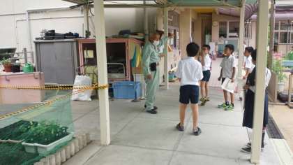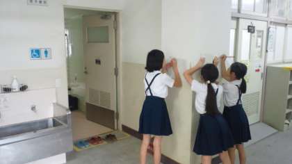 やはりトイレや手洗い場には多いですが、理科室や運動場にもあることに驚いていました。また、幼稚園まで行ってインタビューする様子も見られました。