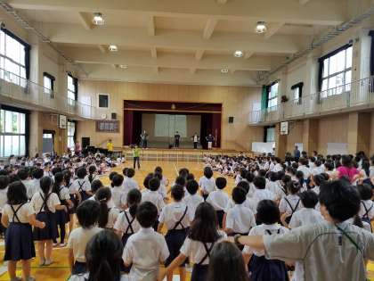 6月21日(水)、5時間目にフレンズ集会がありました。今回は4年生の発表で合唱と合奏披露してくれました。1年生はとても感動した様子でした。次の音楽の授業が待ち遠しいです。