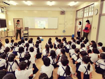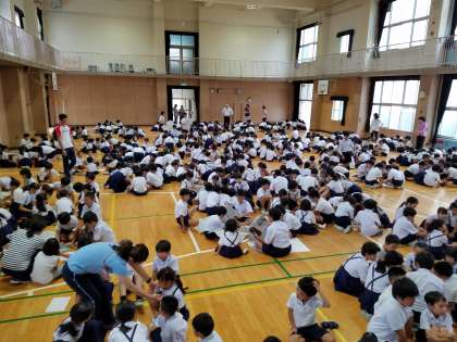 6月29日(木)、今日は集会があり、集会委員が考えてくれた楽しいゲームで朝から盛り上がりました。2時間目には天王寺動物園からの出張スクールがあり、昔の動物園のお話や、質問タイムでの動物のことをたくさん聞いて、子どもたちも大喜びでした。