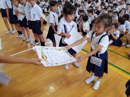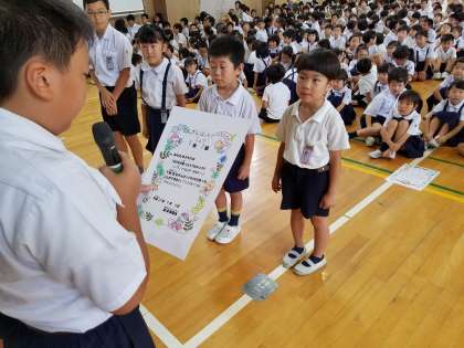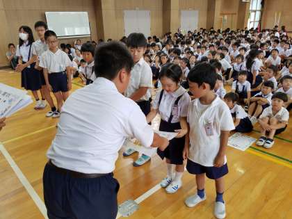 7月6日(木)、今日は朝の集会で清掃委員と給食委員による表彰がありました。1年生はみんな頑張って、各クラス表彰状をもらっていました。とても嬉しそうでした。次も頑張ります。