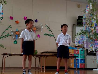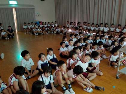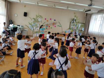 7月7日(金)、幼稚園との連携としてお祭りがありました。人数が多いのもあり、今年は1・2組は靭幼稚園、3・4組は西船場幼稚園へいって活動しました。子どもたちは、園児との楽しい活動にお兄ちゃん、お姉ちゃんらしさを発揮してしていました。