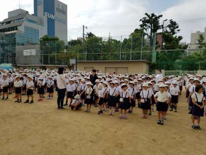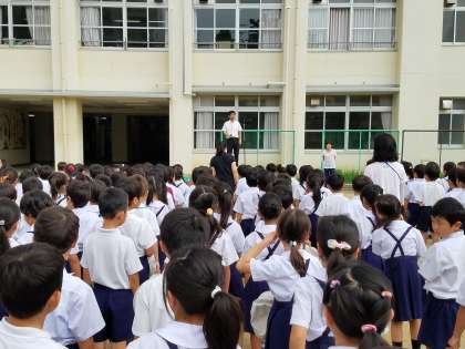 今日は朝会で涼しかったのもあり、しっかりとお話が聞けているようでした。並び方もばっちりでした。