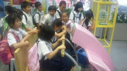 今日は朝から、徒歩10分ほどの所にある「大阪市立科学館」へ社会見学に行きました。他の学校団体もいくつか来ていました。