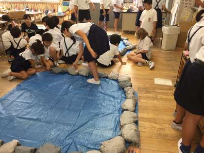 9月6日(水)なかよし班活動がありました。西船場子ども祭りの準備も佳境に入ってきました。お店の飾りやポスター作りを縦割りの班でなかよく作製していました。