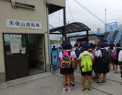 昼食をとり、日本一標高が低いとされる天保山に登り、港区と此花区を結ぶ「渡し船」に乗りました。