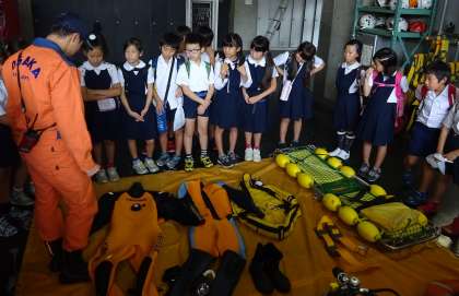 最後には、水上消防署にも向かいました。あまり知ることのない水難救助の道具や、ロープを渡る救助訓練の様子を見学しました。