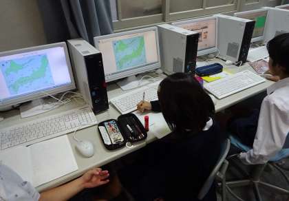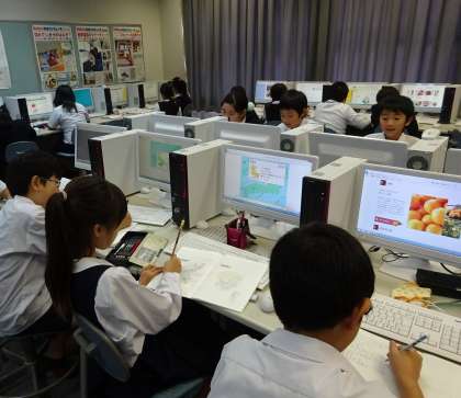 そこで、教科書や図書の本、パソコン室でインターネットを活用しながら、47ある都道府県を一人1つずつ調べています。