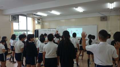 自分の持っているカードを相手に見せずに、「Who are you?」-「I'm goast.」「I'm bat.」と答え、ペアや仲間を見つけると大盛り上がりです。外国語活動、楽しんで取り組んでいます。