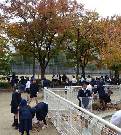 少し前になりますが「大阪市クリーンUP作戦」として、低学年は西船場公園を、中学年は花乃井公園を、高学年は江戸堀公園を清掃しました。