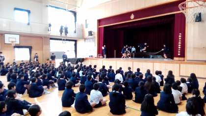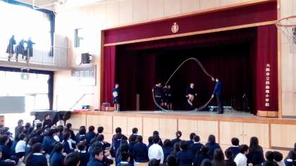 また、長なわを2本使って行う「ダブルダッチ」も披露しました。上手く跳べたときには、会場から自然と拍手が沸き起こりました。