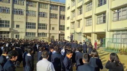 今日の朝礼では、日曜日にありました「管楽器ウィンターフェスティバル」で演奏したブラスバンドのメンバーが表彰されました。自分たちの持ち味を発揮できるようにがんばりましたね。