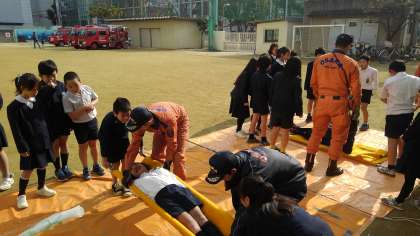 まず、地震に対する避難訓練と、津波警報が発令された場合における高い階層への避難をしました。子どもたちの意識も高まり、スムーズに進むことができました。