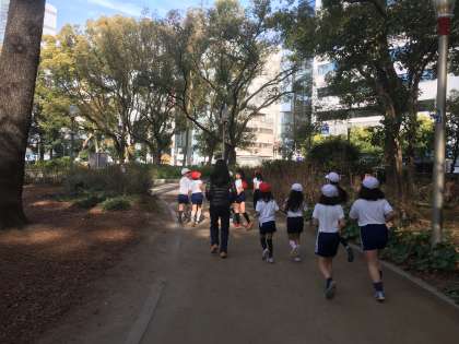 2月9日(金)、靭公園にマラソン大会の試走に出かけました。まずはコースの下見と、走るときの注意点などを確認しながら、2周のランニングを行いました。