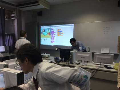 5月18日に株式会社JSOLさんがプログラミングの出前授業に来てくれました。画面上にいるキャラクターが自分の指示したとおりに動く面白さに、子どもたちはとても熱中していました。