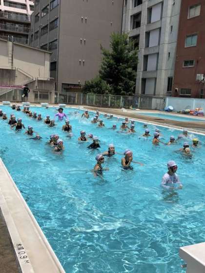 いよいよ待ちに待ったプール学習がはじまりました。気温が高いこともあって、「気持ちいい!」「ずっとプールに入りたい!」と、水の中での活動を楽しんでいます。今年度は、平泳ぎの練習にも取り組んでいきます。