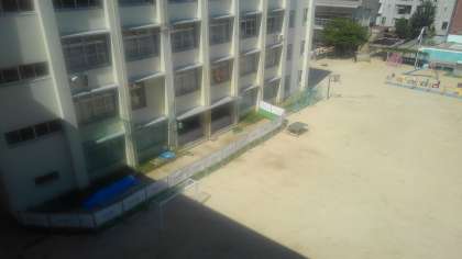 写真は、運動場の様子です。工事のフェンスが建っており、少し運動場が狭くなっています。