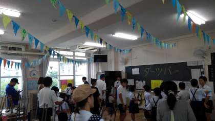 「射的」「宝さがし」「ダーツ」や、「指PK」「?ボックス」などなど、子どもたちのアイディアが盛り込まれた楽しいお店がたくさんありました。