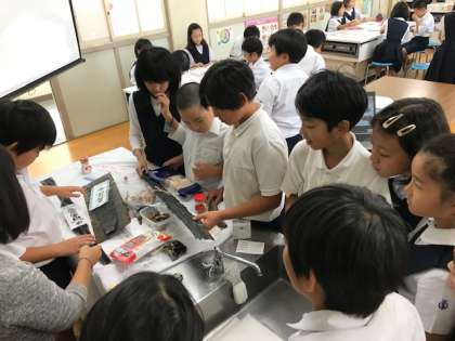 10月12日(月)出前授業で味の素の方に来ていただきました。学習の中で「うま味」について深く学びました。子どもたちは、味噌だけをといた味噌汁と、だしを加えた味噌汁を飲み比べて、味の違いを話し合ったり、味覚について新しい発見をしたりと、積極的に学習していました。