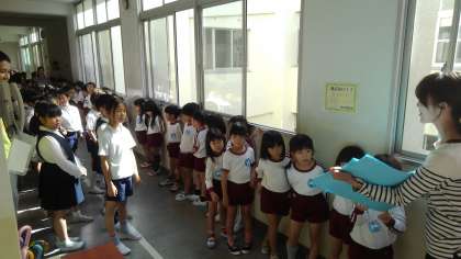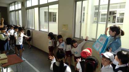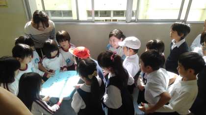 西船場幼稚園の子どもたちが、2年生の教室にやって来てくれました。