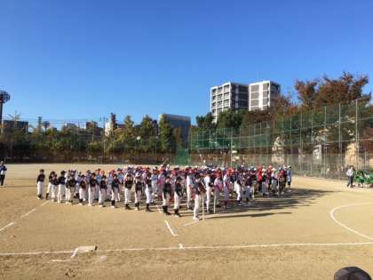 西区のソフトボールチームとキックベースボールチームが松島少年広場に集まり、オリックリバファローズ杯が行われました。昨年度優勝したフレンズ子ども会ソフトボールチームは、今年度も順当に勝ち進み、決勝戦では九条南に対して1対0で勝利!見事に優勝する事ができました!