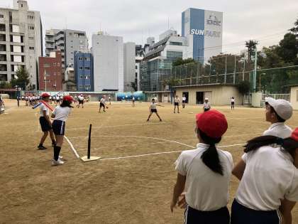 6年生は体育でティーボールをしています。みんな練習を重ねるたびに打つ技術が伸びてきました。応援も各チーム個性的で、毎試合盛り上がりをみせています。