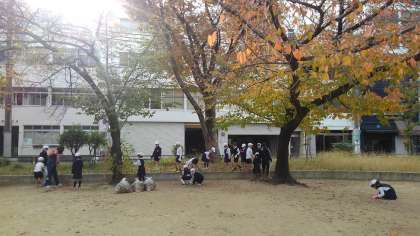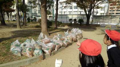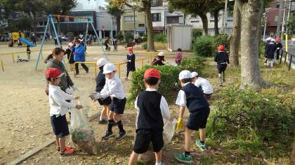 各学年に分かれ、1・2年生は学校のすぐ近くの西船場公園を、3・4年生は花乃井公園を、そして5・6年生は遠くの江戸堀公園を美しくしました。