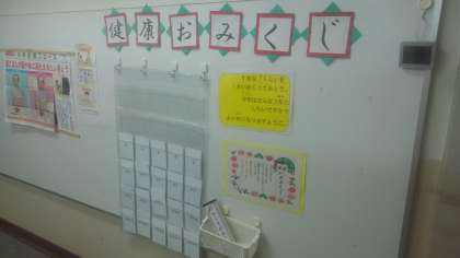 写真は、保健室の前に掲示してあります「健康おみくじ」です。