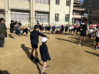 大なわチャレンジの時の一年生の様子です。