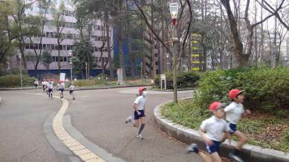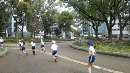 今日は初めて、長い距離(2周・約1,400m)のうつぼ公園を走りました。しかし、走り終わったときには、清々しい表情をしている子が本当に多かったです。頬を赤らめている子も多く、達成感があふれていました。